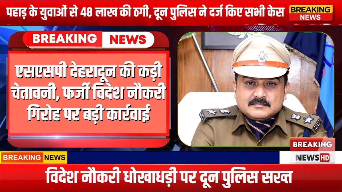 Dehradun : पहाड़ के सपनों को देखने वाले युवाओं का भविष्य बर्बाद करने वालों पर अब पुलिस की सख्ती बढ़ गई है। विदेश में नौकरी या पढ़ाई का झांसा देकर ठगी करने वाले गिरोहों के खिलाफ देहरादून पुलिस ने बड़ा एक्शन लिया है। देहरादून SSP ने 10 अलग-अलग मामलों में मुकदमा दर्ज करने के सख्त निर्देश दिए हैं। इन मामलों में ठगों ने 19 युवाओं से कुल 48 लाख रुपये से ज्यादा की धोखाधड़ी की है।